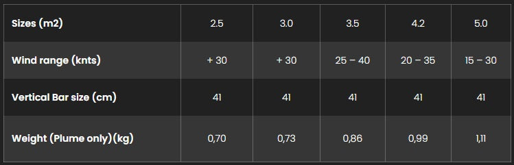 Gliding feels effortless, as the PLUME pulls you forward without straining your arms. Its super light construction and superior upwind capability make it a favorite for deflaters. The minimal bridle system makes setup simple and safe, even offshore. Finally, the PLUME’s tiny leading edge can be deflated in the air and re-inflated at sea with a mini pump.